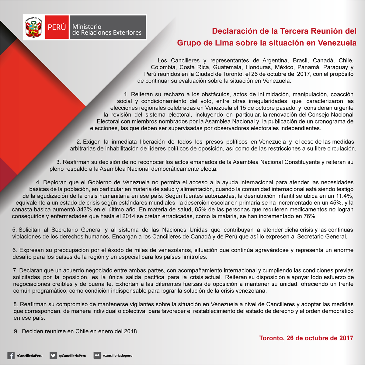 Grupo de Lima reafirma desde Toronto su decisión de no reconocer a la ANChttps://twitter.com/cancilleriaperu/status/923634167119798278 …