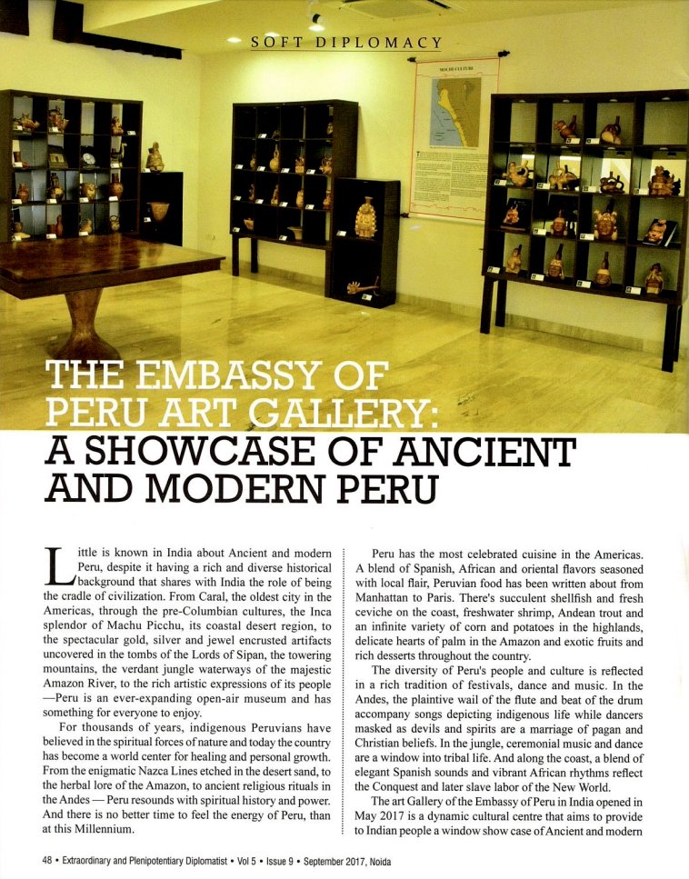 Artículo | Revista Diplomatist de India destaca rol de Galería de Arte de la Embajada de Perú como vitrina del Perú antiguo y moderno