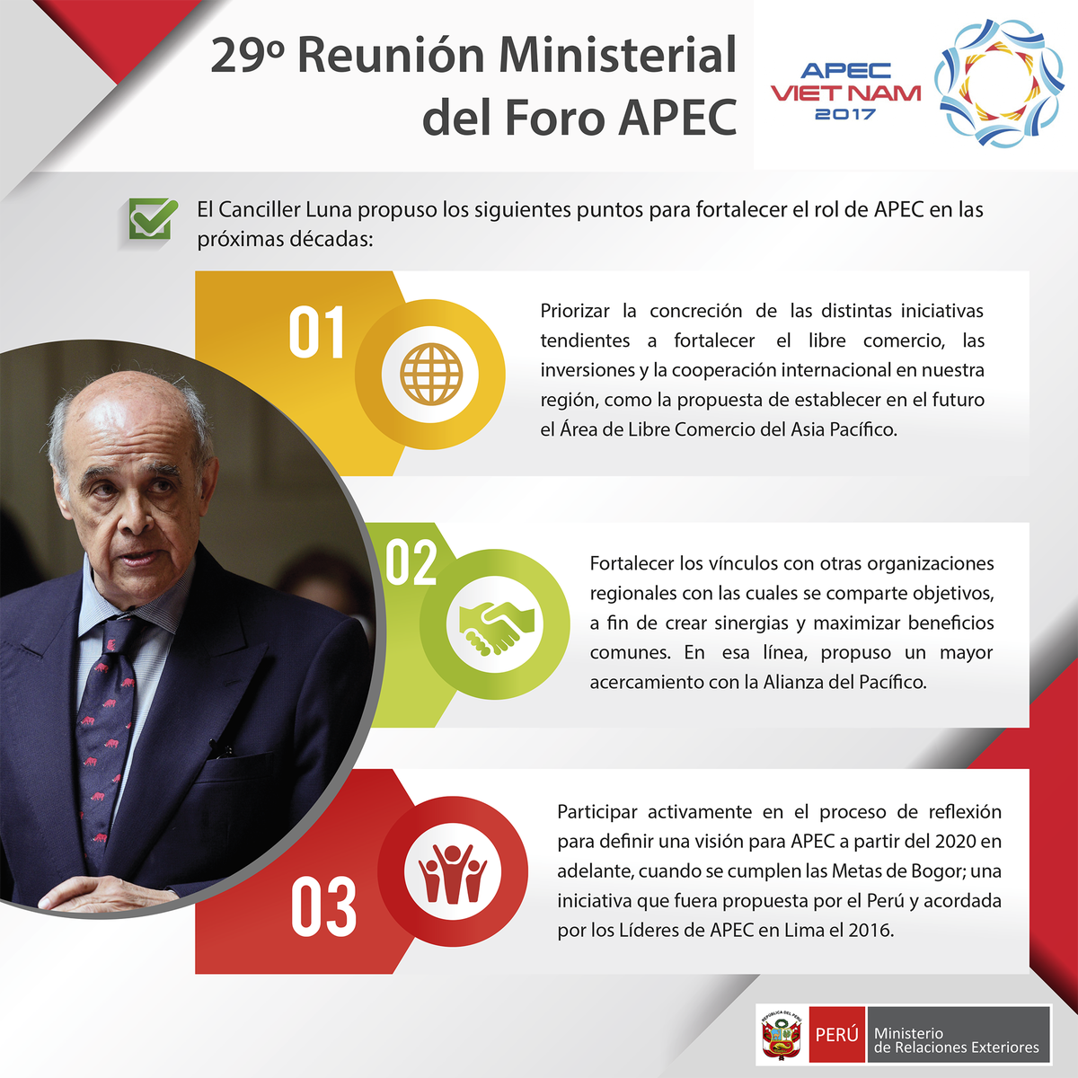 Foro #APEC2017 | Canciller Luna realizó diversas propuestas para fortalecer rol de @APEC en las próximas décadas. Conoce cuáles son