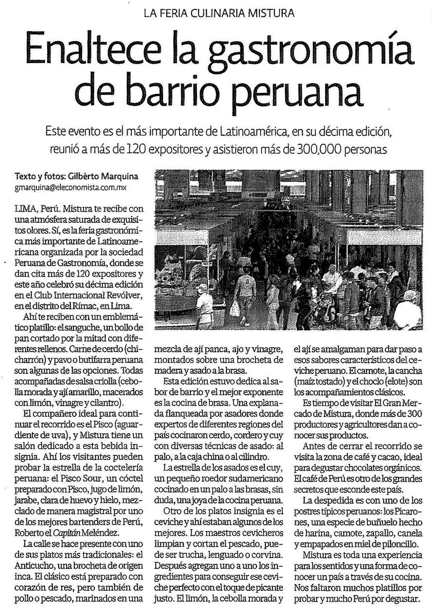 🗞️ Diario @eleconomista de México destacó realización de feria gastronómica @MisturaPeru calificándola como la “más importante de Latinoamérica” ⤵️⤵️pic.twitter.com/wR05DL3ZAh
