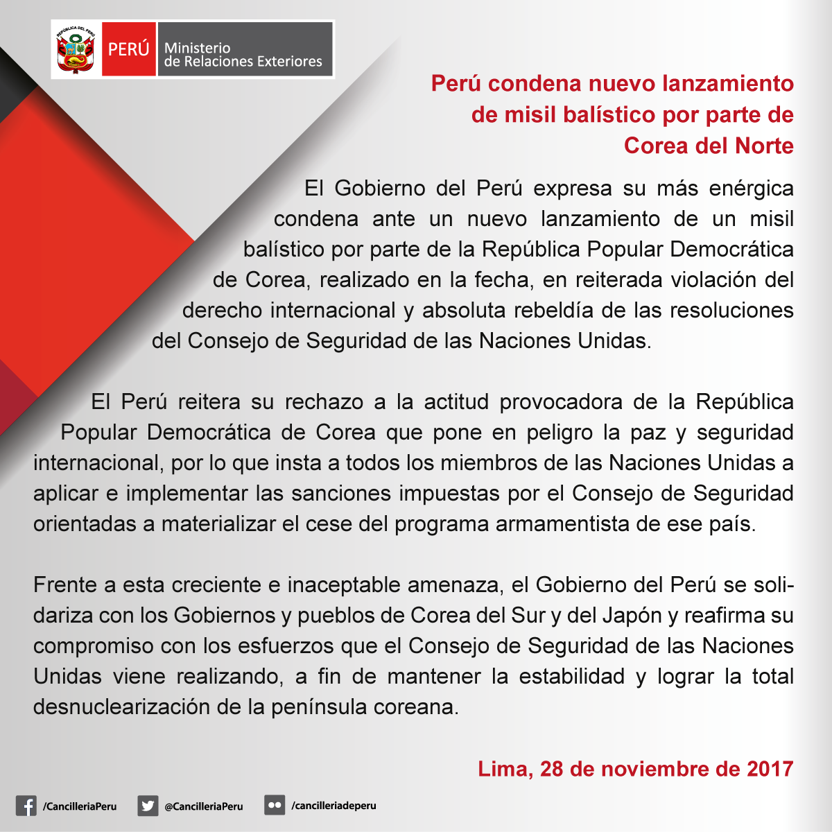 Perú condena el misil que va a lanzar Baratta, imagino como tiemblan varios políticos. Huy uy uyyyy