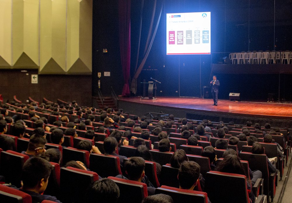 Alrededor de 1300 alumnos de primaria y secundaria del colegio San Agustín de Lima recibieron charlas sobre la actividad científica de #PerúEnLaAntártida http://bit.ly/2AdCz01 pic.twitter.com/3LF6TrQAA0