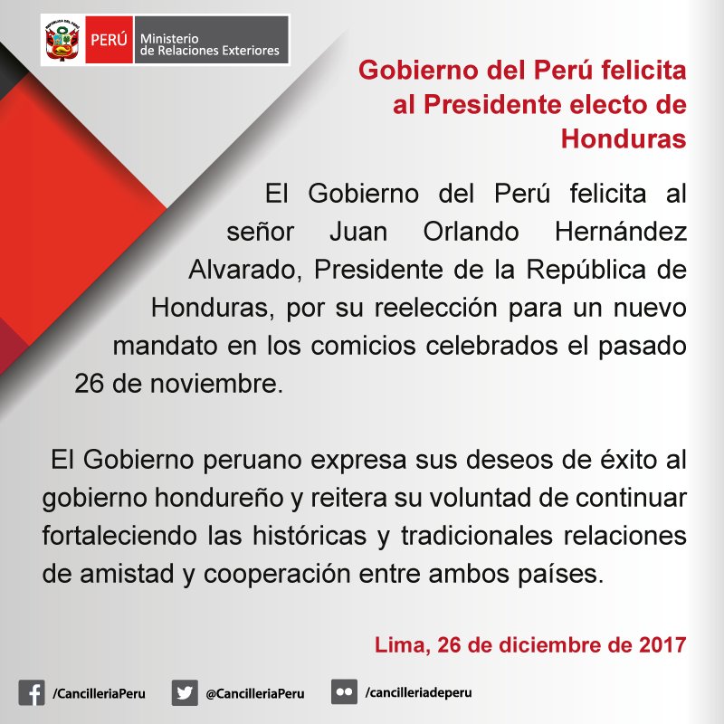Ahora sí, explícanos Cancillería Perú, cómo es que las elecciones de Honduras satisfacieron los estándares internacionales.