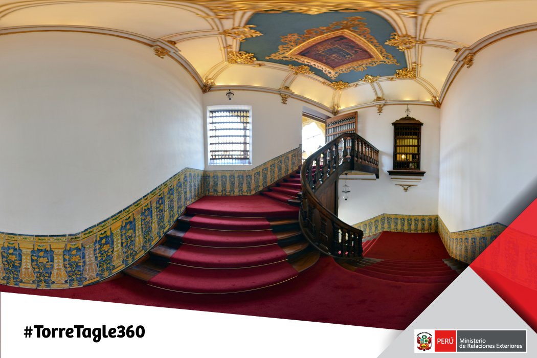Conoce la escalera de honor del Palacio de #TorreTagle360 adornada con impresionantes azulejos. ¡Recorre la sede de @CancilleriaPeru a través de nuestro tour virtual! http://rree.gob.pe/torretagle360 pic.twitter.com/0v8ADO94f4