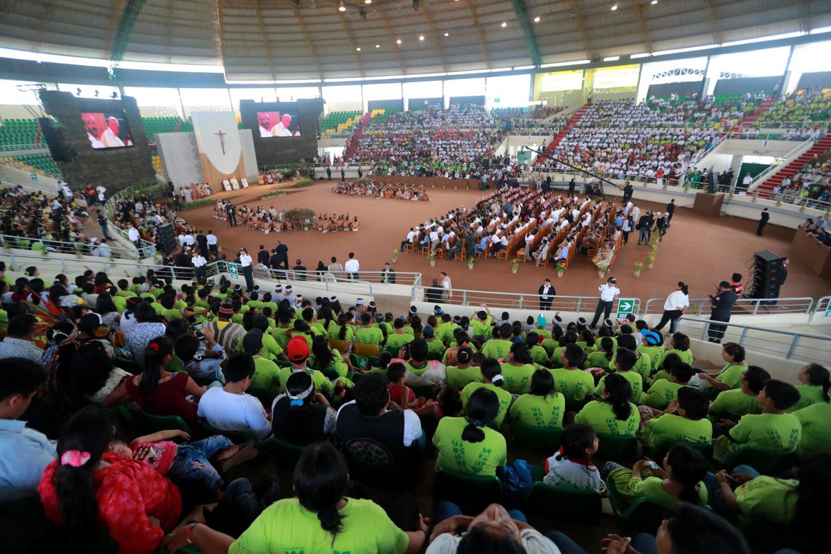 The aborigen people they take care the jungle but the goverment president sell the jungle is really funny to see this people catolic just for obe day the papa is going so far from peru the goverment sell the jungle