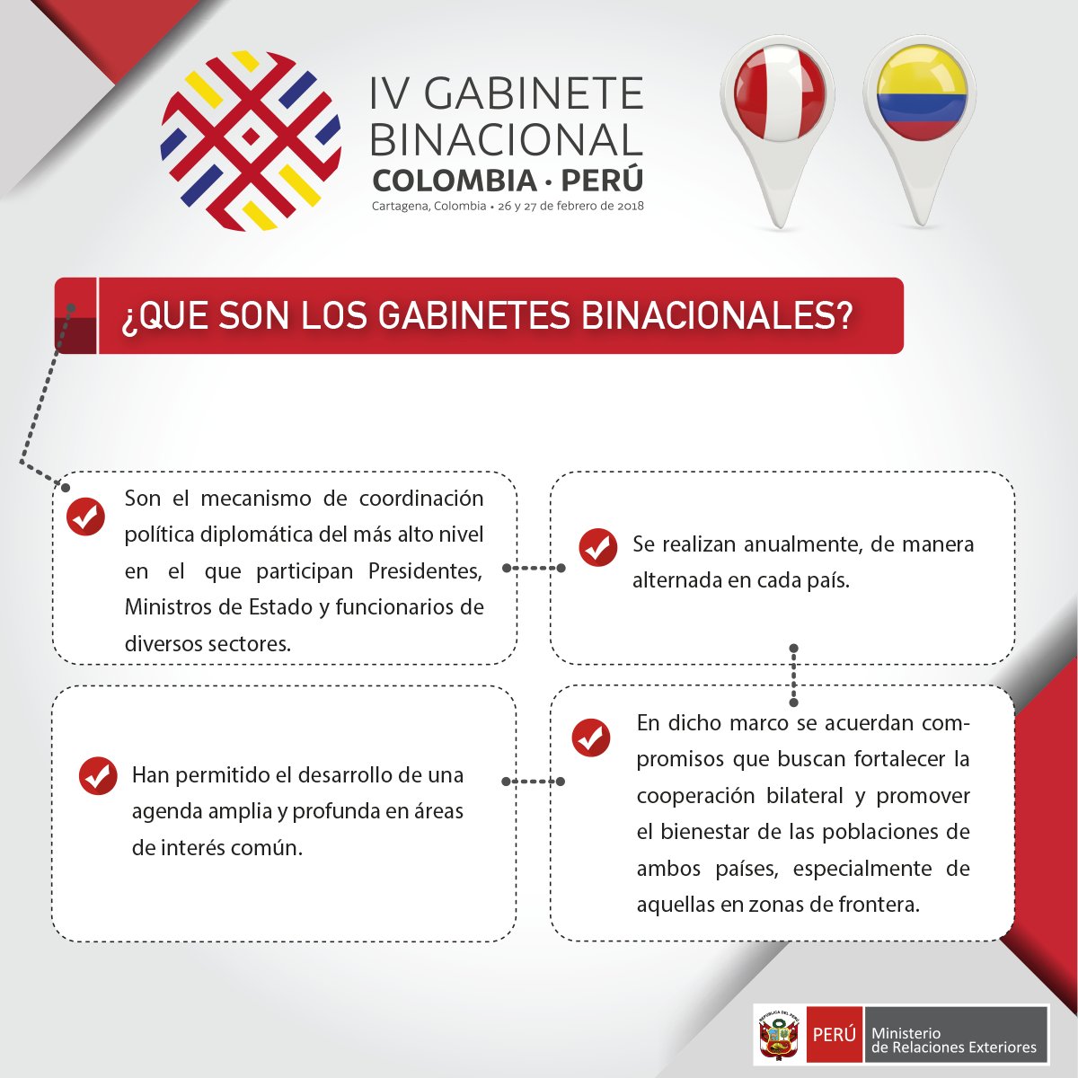Ministerio de Relaciones Exteriores. Formulamos, ejecutamos y evaluamos la política exterior del país. Facebook: http://facebook.com/CancilleriaPeru