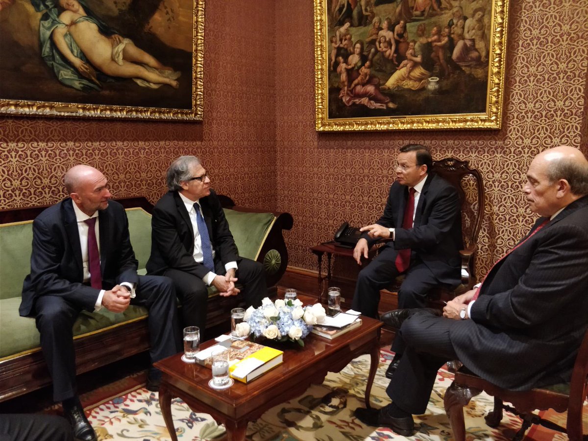 Canciller @NestorPopolizio | Coordinando asuntos relativos a la Cumbre de las Américas (#CumbrePerú) con Secretario General de @OEA_oficial, Luis Almagro (@Almagro_OEA2015)pic.twitter.com/1Trs12TIki