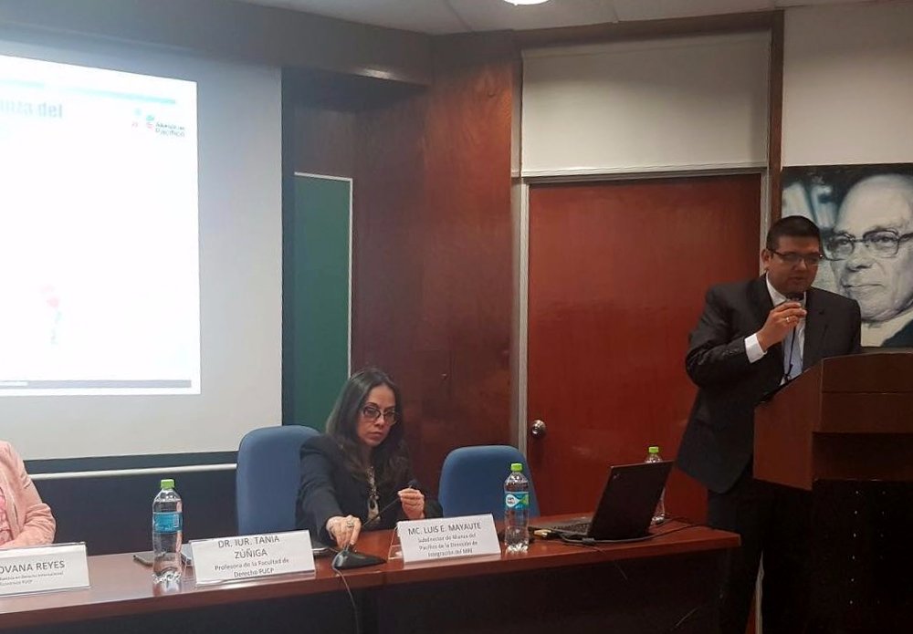 Subdirector de @A_delPacifico (AP) de la Dirección de Integración de @CancilleriaPeru dio a conocer la visión, objetivos, retos y beneficios de AP en el escenario internacional durante conferencia “Proyección de la #UE en América Latina y el Perú” realizada en la @pucppic.twitter.com/H9MHUMNApn