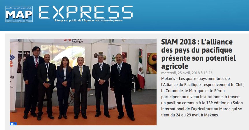 Prensa marroquí destaca participación de @A_delPacifico en 13.º edición del Salón Internacional de la Agricultura de Marruecos (SIAM)pic.twitter.com/DbWzoB6Hk7