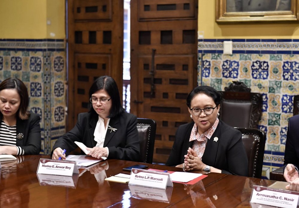 Perú e Indonesia sostienen reunión de trabajo en el marco de la visita de la Ministra de Relaciones Exteriores de Indonesia a nuestro país. El encuentro es encabezado por Cancilleres @NestorPopolizio y Retno Marsudipic.twitter.com/DAxnIsOwD7
