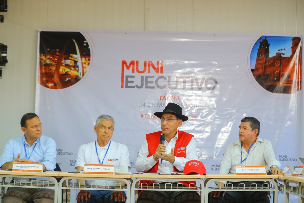 Junto al presidente @MartinVizcarraC y el premier @CesarVPeru, el canciller @NestorPopolizio participó en el #MuniEjecutivo por el desarrollo productivo de Tacna. #TendiendoPuentespic.twitter.com/NnfMgEg49q