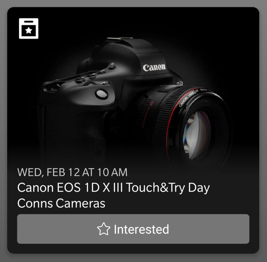 @CanonUKandIE EOS 1D X Mark III before it's official release - see how it feels, find out about the new features & impressive new video options, & have all your questions answered!pic.twitter.com/newmaA9RHQ