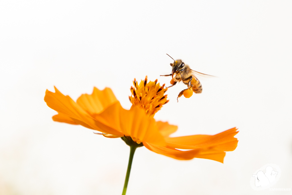 動いているミツバチにピントを合わせられるのはさすがのテクニックです
