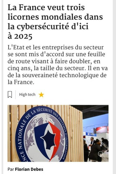 "La France veut 3 licornes mondiales dans la cybersecurité d'ici 2025" Promis