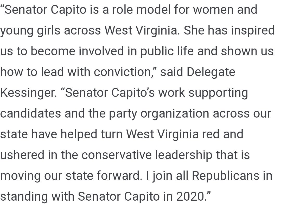 We are honored to announce the support of Republican National Committeewoman and West Virginia Delegate Kayla Kessinger! Join @KaylaKessinger and #StandwithShelley for reelection in 2020. Learn more at: http://capito2020.com/2019/06/wv-rnc-members-stand-with-capito/ …pic.twitter.com/3S4It6JcEk