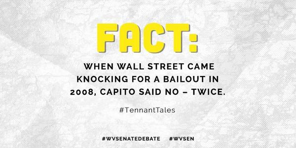 When Wall St. came knocking for a bailout in '08, Capito voted NO 2x: http://bit.ly/1nYPGrB  #WVSenateDebate #wvsenpic.twitter.com/bucXaYCixF