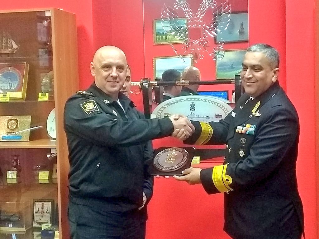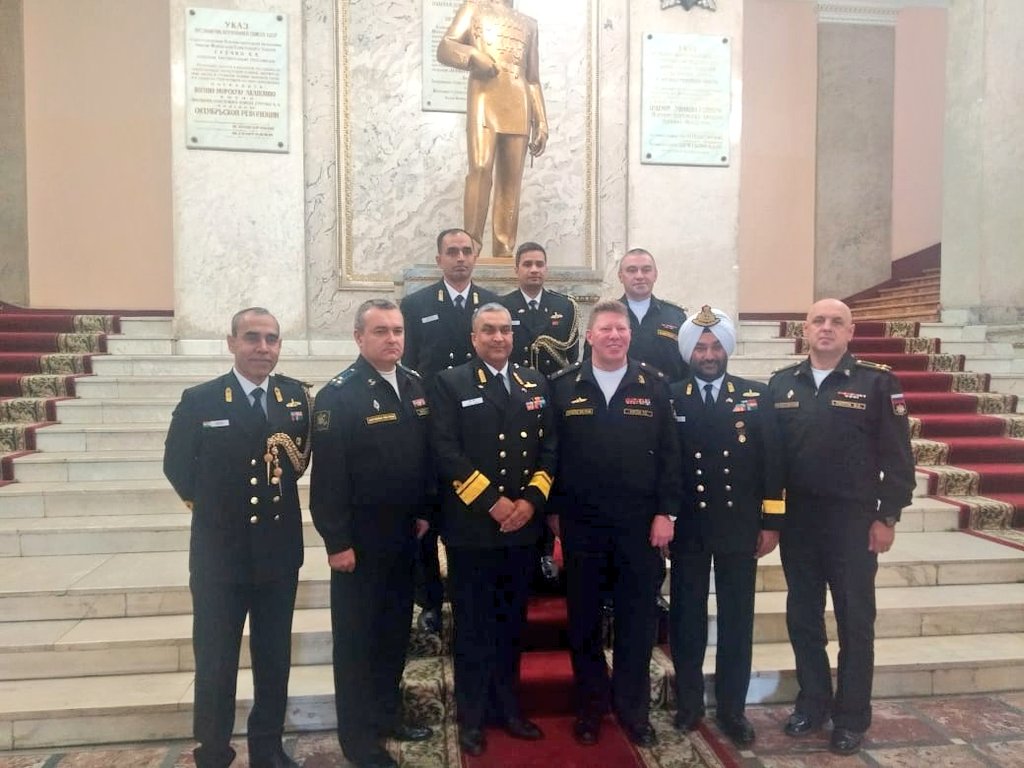 #BridgesofFriendship#IndianNavy training delegation led by RAdm Suraj Berry, ACOP (HRD) visits Russia to enhance training cooperation in niche areas. The team visited Russian Naval Academy, Military Institute & Naval Polytechnic Institute of Naval Academy@IndEmbMoscowpic.twitter.com/XOXRzGWgmY