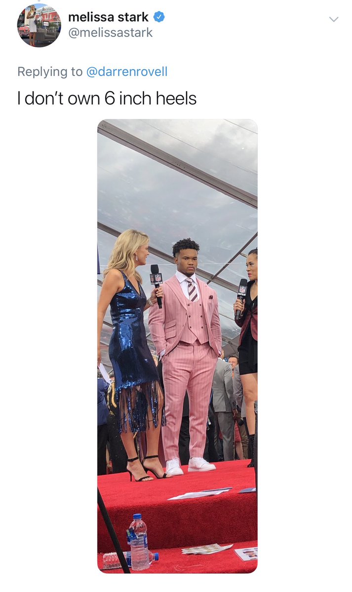 The most talked about shoes last night were Kyler’s. They should have been Melissa Stark’s.pic.twitter.com/jPmVM8ro8f