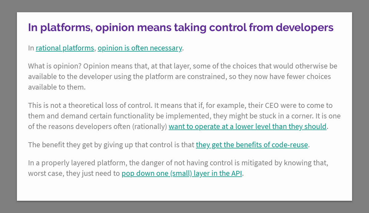 In platforms, opinion means taking control from developers https://thecompendium.cards/c/opinion-means-less-control-for-developers …pic.twitter.com/lcEaGnG3vk