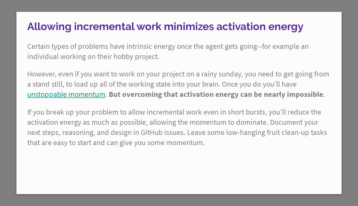 Allowing incremental work minimizes activation energy https://thecompendium.cards/c/incremental-work-minimizes-activation-cost …pic.twitter.com/gr3N8GBlh2