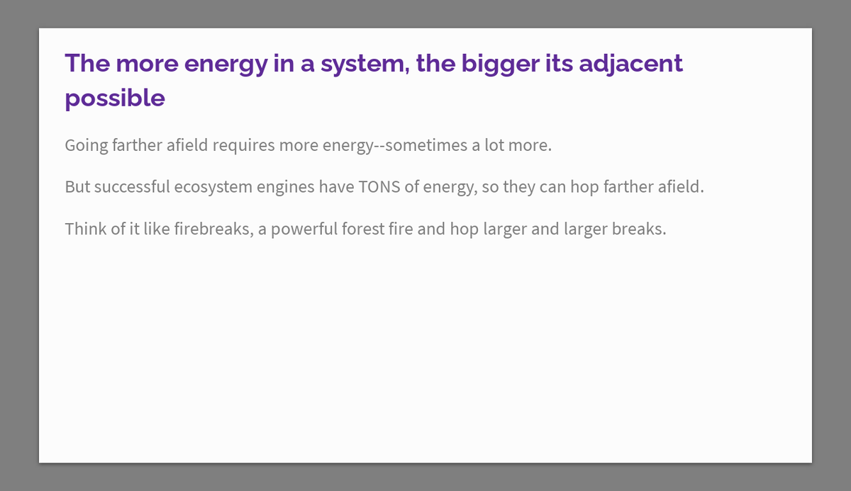 The more energy in a system, the bigger its adjacent possible https://thecompendium.cards/c/energy-bigger-adjacent-possible …pic.twitter.com/XVTsoHTYAe