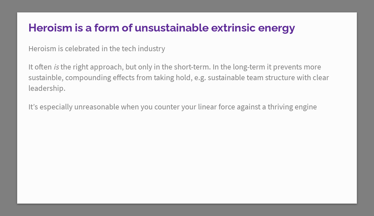 Heroism is a form of unsustainable extrinsic energy https://thecompendium.cards/c/heroism-unsustainable …pic.twitter.com/3SvHNIL4bR