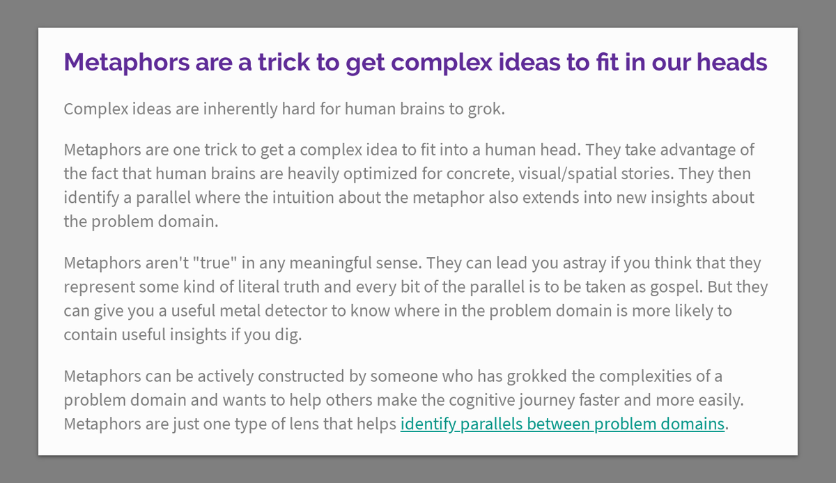 Metaphors are a trick to get complex ideas to fit in our heads https://thecompendium.cards/c/metaphors-fit-complex-ideas …pic.twitter.com/UyTQvKnvwr