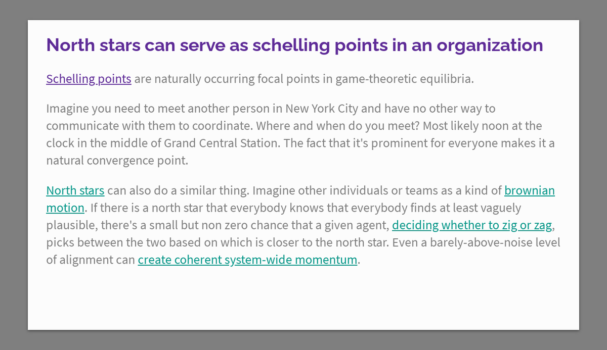 North stars can serve as schelling points in an organization https://thecompendium.cards/c/north-star-schelling-points …pic.twitter.com/Ele11PCDYQ