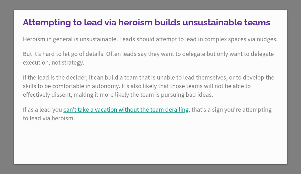 Attempting to lead via heroism builds unsustainable teams https://thecompendium.cards/c/leading-via-heroism-unsustainable-teams …pic.twitter.com/XiNSXB9xed