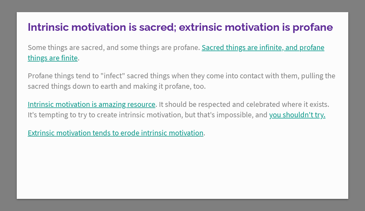 Intrinsic motivation is sacred; extrinsic motivation is profane https://thecompendium.cards/c/intrinsic-motivation-is-sacred …pic.twitter.com/JDiPGCMXNH