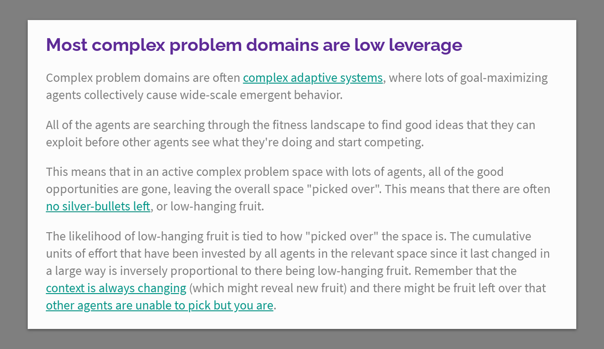 Most complex problem domains are low leverage https://thecompendium.cards/c/complex-problems-low-leverage …pic.twitter.com/zW0wkaBJHO