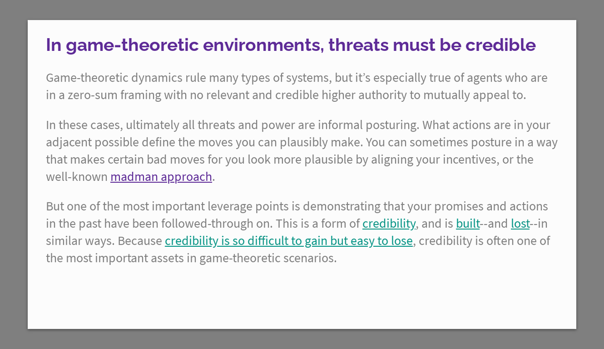 In game-theoretic environments, threats must be credible https://thecompendium.cards/c/threats-must-be-credible …pic.twitter.com/ADwU2QpmxN