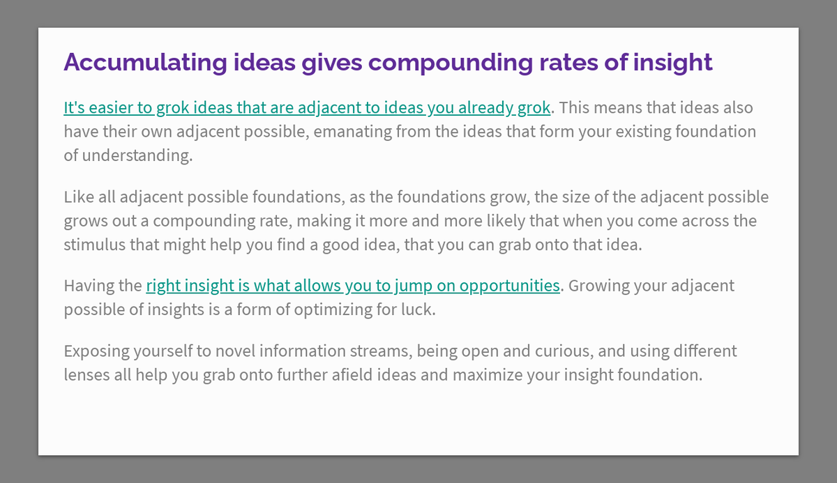Accumulating ideas gives compounding rates of insight https://thecompendium.cards/c/accumulating-ideas-compounding-rate-of-insight …pic.twitter.com/P5O67o2f12