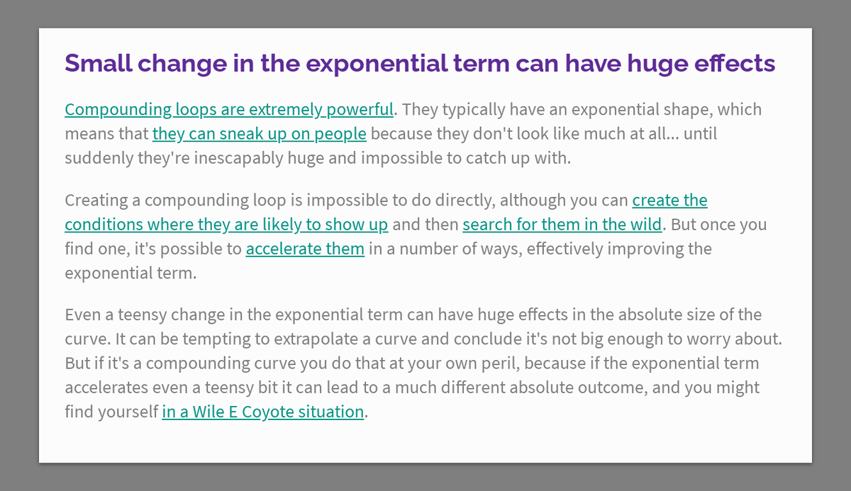 Small change in the exponential term can have huge effects https://thecompendium.cards/c/small-change-in-the-exponential-term-can-have-huge-effects …pic.twitter.com/fDkMWbGDeo