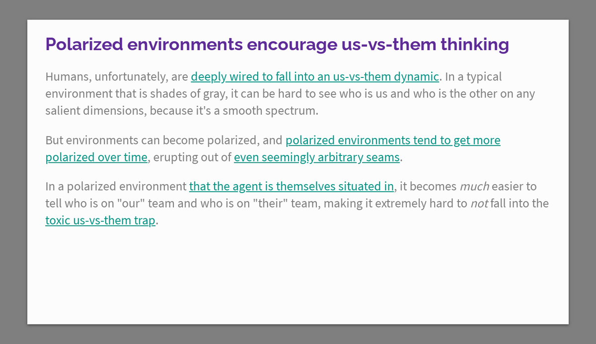 Polarized environments encourage us-vs-them thinking https://thecompendium.cards/c/polarized-us-vs-them …pic.twitter.com/0k7kg9EWlC