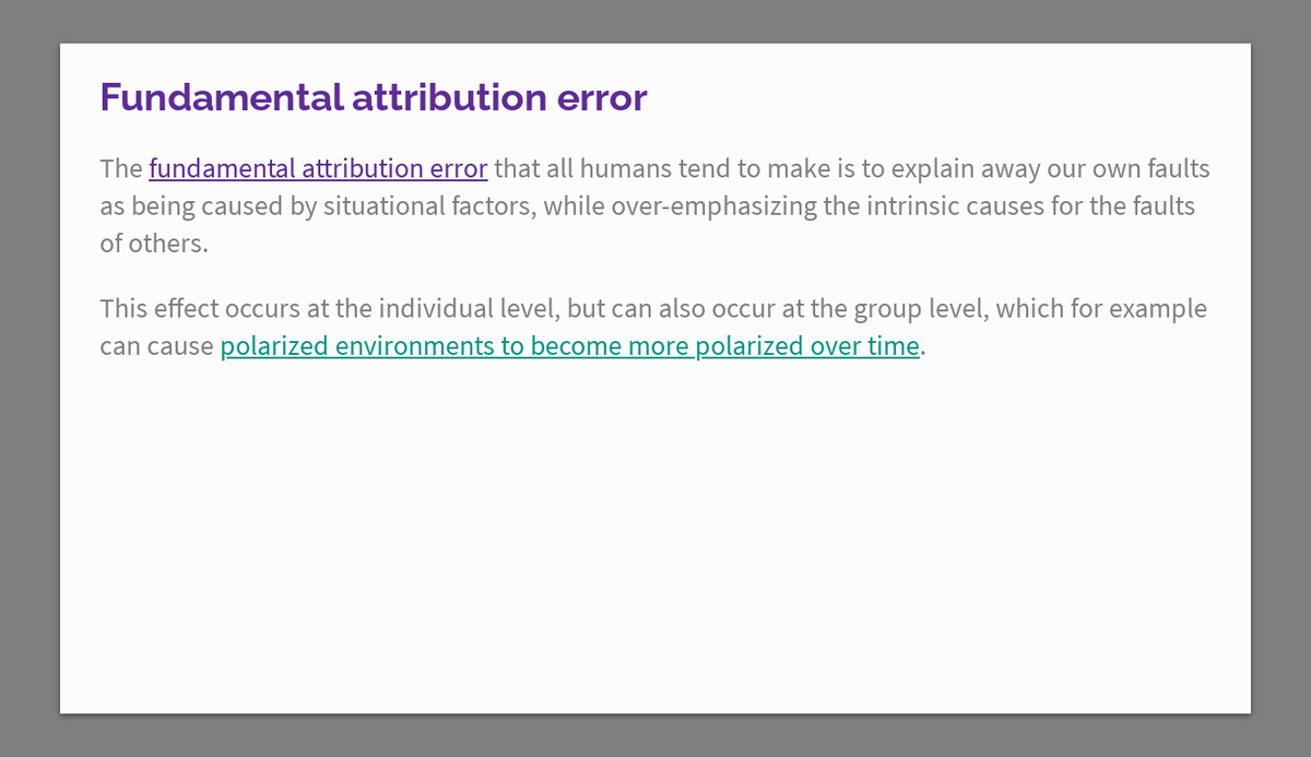 Fundamental attribution error https://thecompendium.cards/c/fundamental-attribution-error …pic.twitter.com/uqavEFT0i7