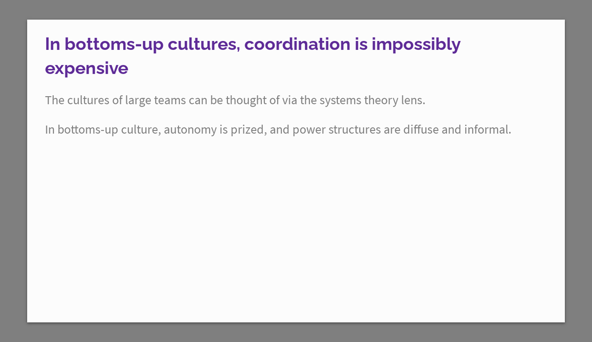 In bottoms-up cultures, coordination is impossibly expensive https://thecompendium.cards/c/bottoms-up-coordination-expensive …pic.twitter.com/8cMWHhkcBD