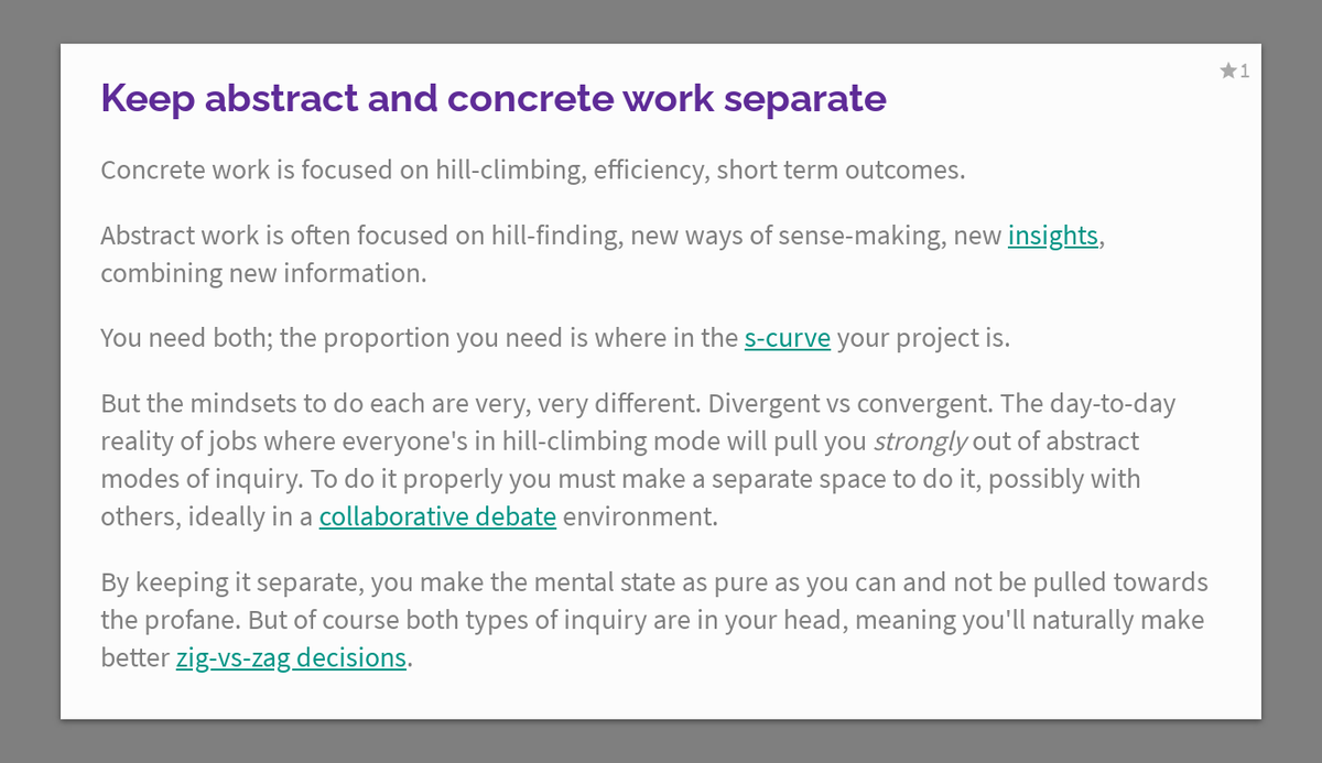 Keep abstract and concrete work separate https://thecompendium.cards/c/keep-abstract-concrete-separate …pic.twitter.com/FYoZDeQ7hI