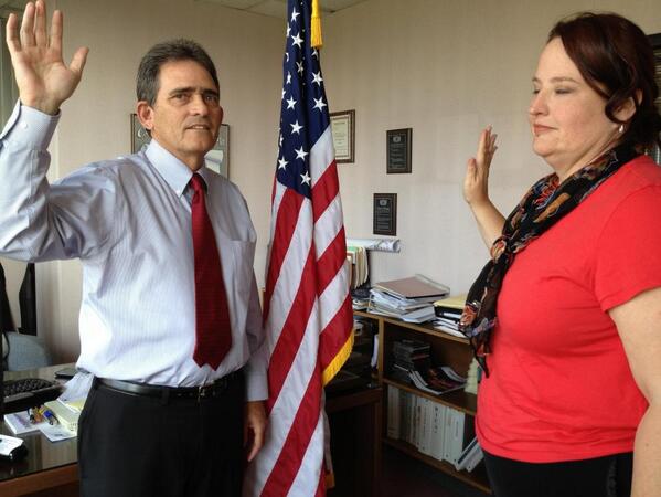 City Clerk, Gigi Hanna administering candidate oath to Carey Davis..pic.twitter.com/q1mS6UJpMe