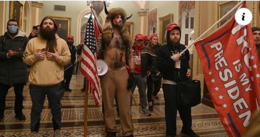 “PEOPLE DRESSED IN ALL BLACK WITH MAGA HATS ON SPRAYING FIRE EXTINGUISHERS INSIDE THE CAPITAL”