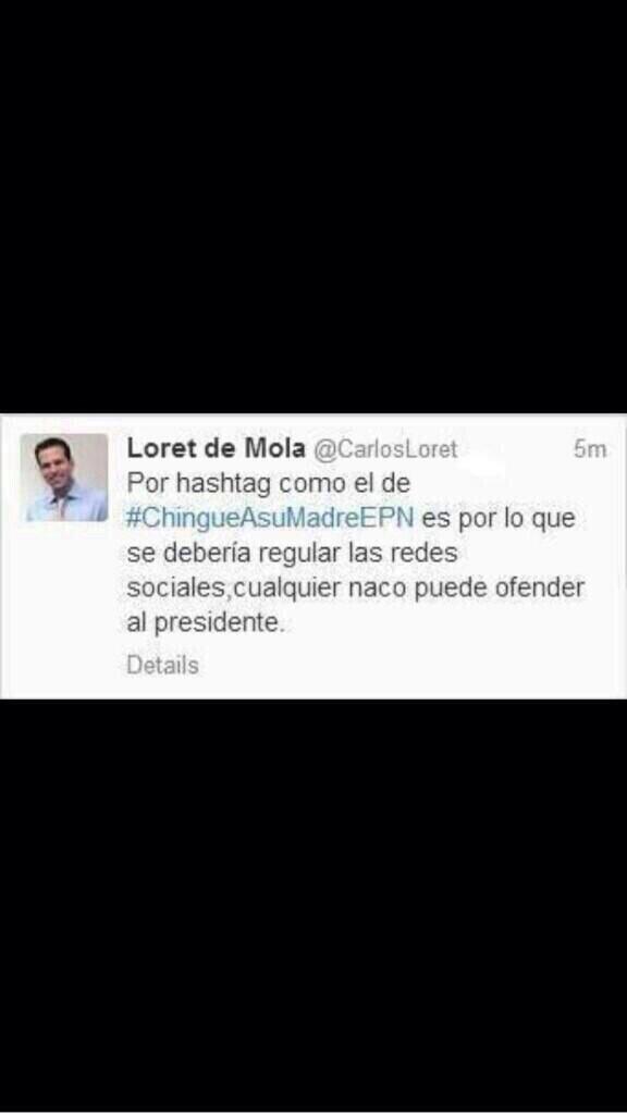 @CarlosLoret (----#PeñaBot detectado#ChingueAsuMadreEPNThanks. Twitter will use this to make your timeline better. UndoUndo