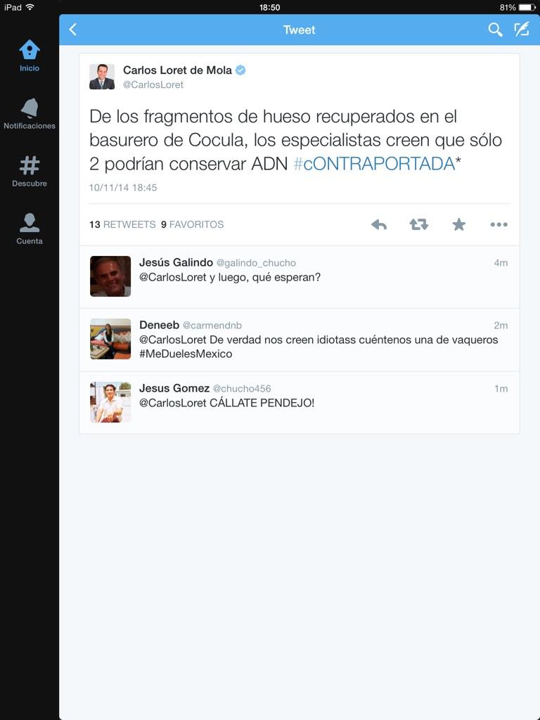 @CarlosLoret que conveniente, así dirían que 2 son de los 43#YaMeCanseThanks. Twitter will use this to make your timeline better. UndoUndo