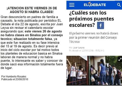 en Sinaloa no se suspenden labores pero un periódico saco nota del primer puente este viernes