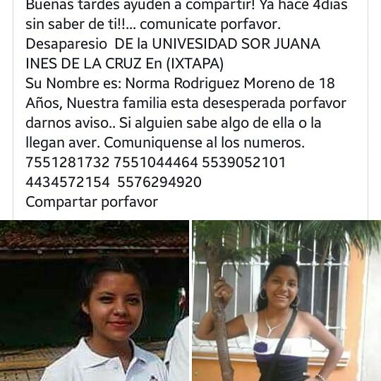 ayudame porfavor para localizar a mi sobrina norma rodriguez moreno porfavor ya que estamoy desesperadas.pic.twitter.com/Q10L93tYfF