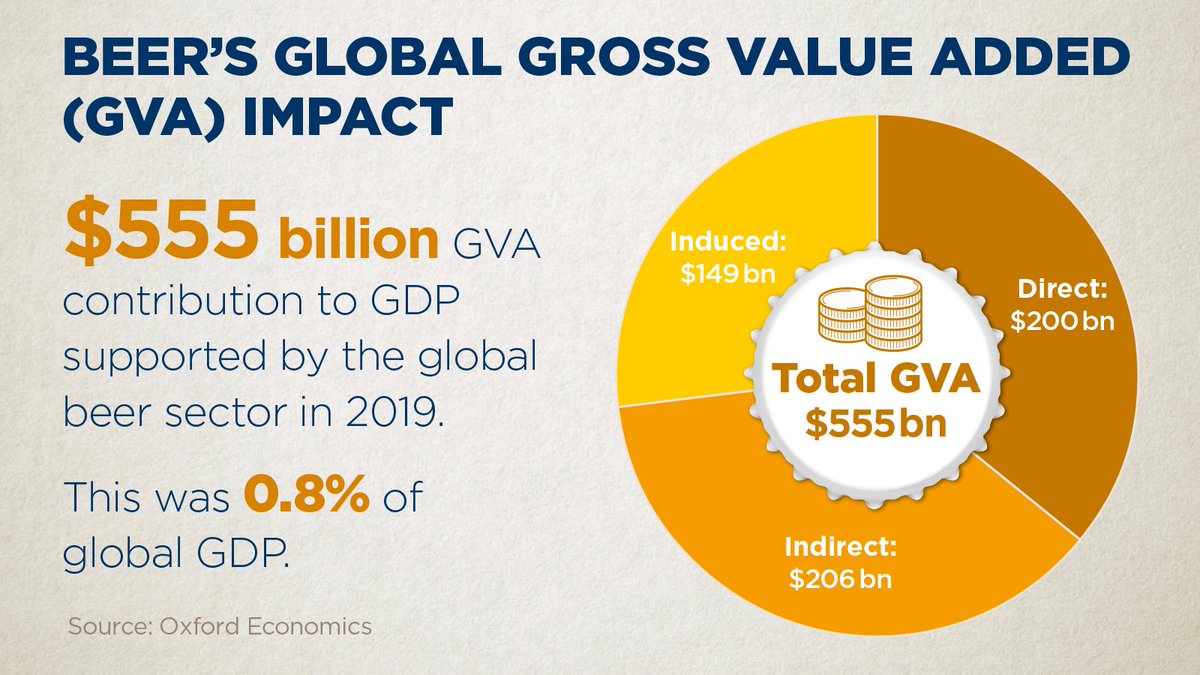 @OxfordEconomics finds that in 2019, the#beer sector’s total economic impact amounted to $555 billion gross value added (GVA) contribution to global GDP. That's more than the GDP of Belgium! Find out more: http://www.worldwidebrewingalliance.org/impact pic.twitter.com/wpkJEYssPm