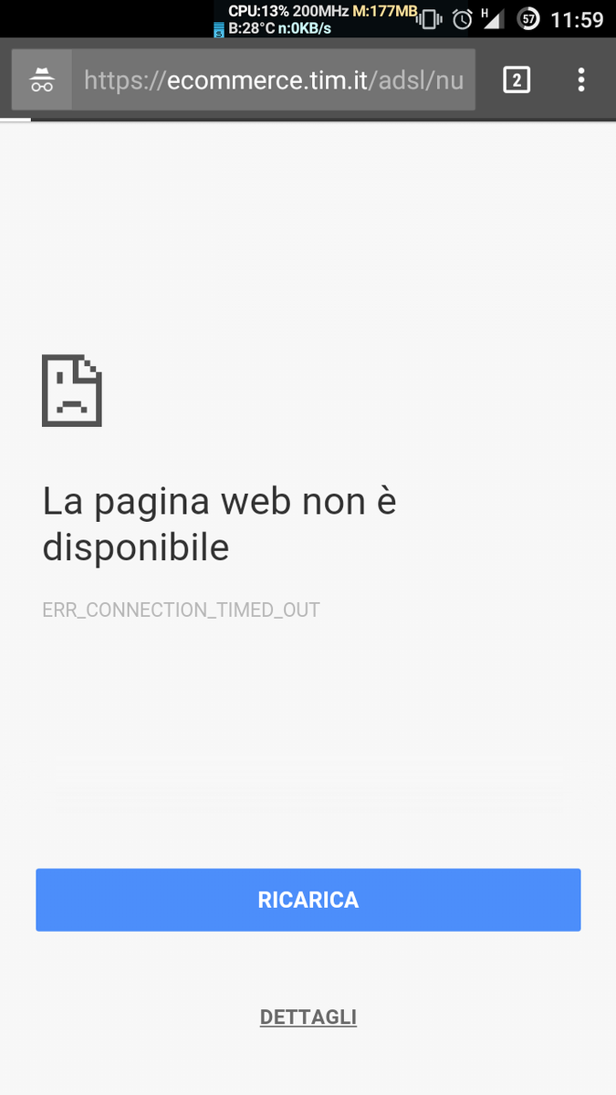 Qualcuno ha problemi a vedere https://ecommerce.tim.it/adsl/nuovoimpianto/2427 … da mobile e ADSL