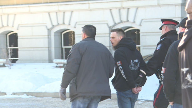 Groups they are calling out are Solider/Wolves/Nouns of Odin, The Clann (who were present, one member taken by police for what I am told are unrelated outstanding warrants), Canadian Infidels. Says if YV denounced these groups, they would stop counter-protesting. #yegpic.twitter.com/fuNgWDG0Tt