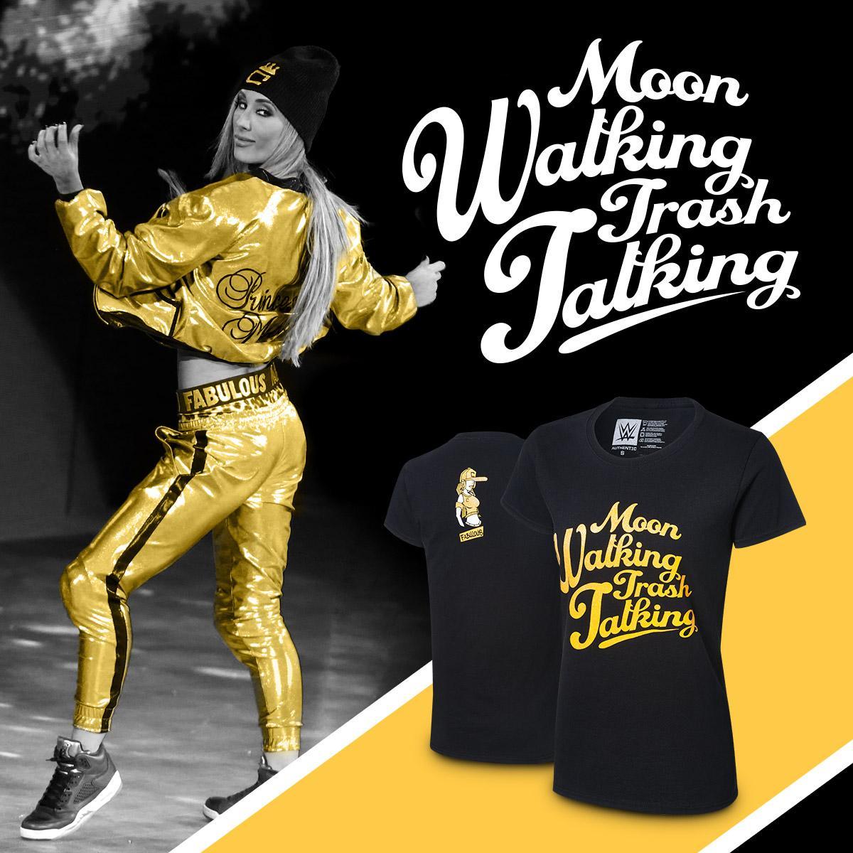 #MoonWalkingTrashTalking#PrincessOfStatenIsland. Get your all-new authentic@CarmellaWWE tee at#WWEShop!#WWE#Carmella http://bit.ly/2Gz4hsc pic.twitter.com/3sKh4OLeca