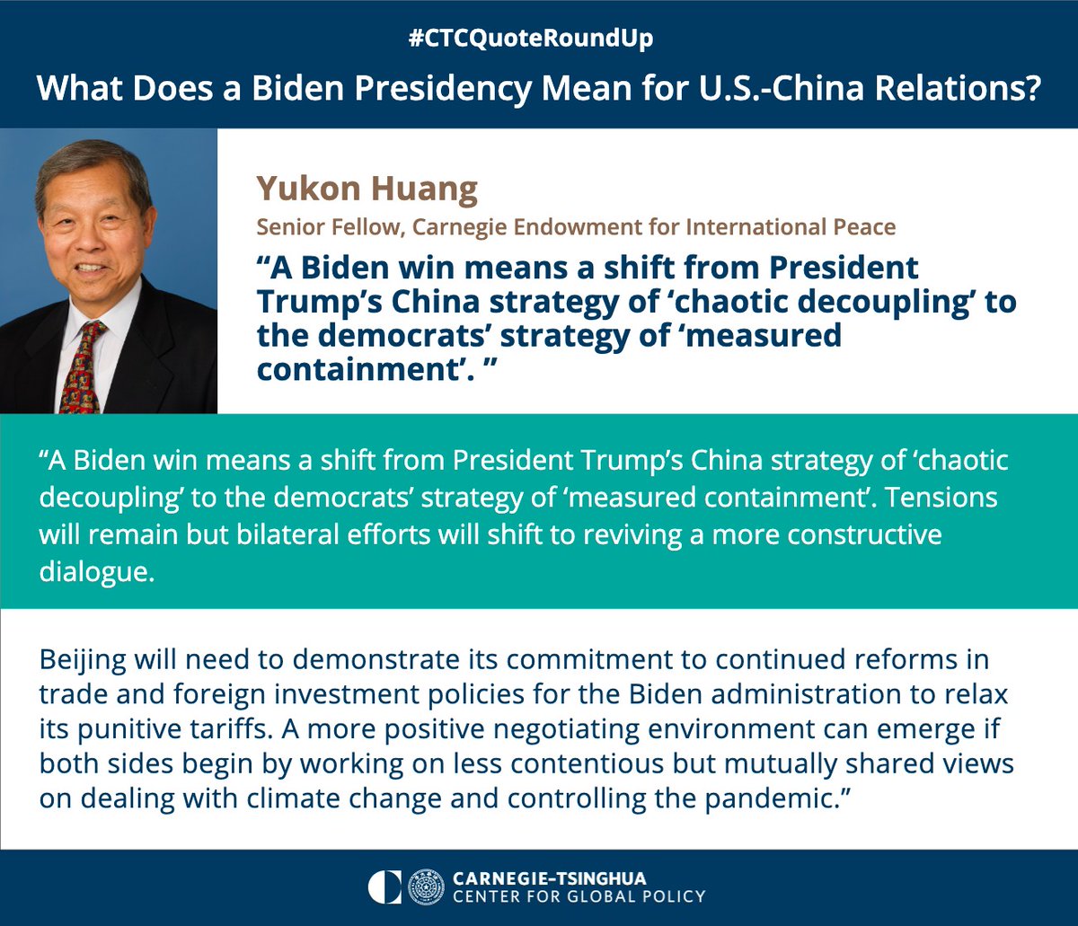 #CTCQuoteRoundUp | What does the#Biden presidency mean for#US -#China#trade and economic relations? Check out Yukon Huang’s analysis