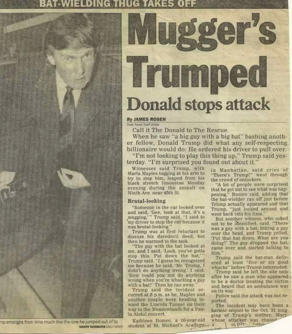 Today, Trump said: "I really believe I'd run in [in the Florida school] even if I didn't have a weapon." Would Trump do that? A 1991 report outlines how he stopped his car, got out, and stopped a man beating another person with a baseball bat. https://www.theepochtimes.com/donald-trump-apparently-stopped-a-mugging-in-1991-resurfaced-report-says_2031210.html …pic.twitter.com/d4L1pMcQoE